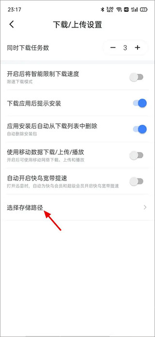 2、在设置菜单里往下翻,找到“下载/上传设置”这一项,点进去