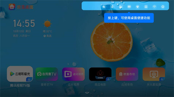 1、首次进入软件会弹出操作指引,操控遥控器按上键便能快速访问各项便捷功能