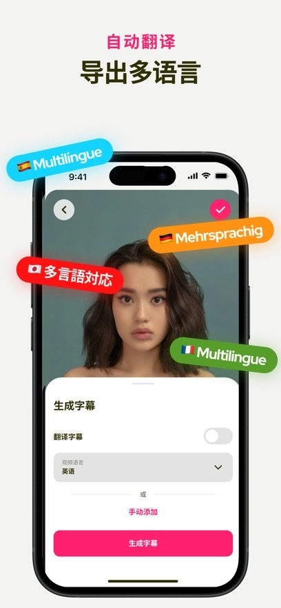 2、自动生成字幕并支持多语言翻译
