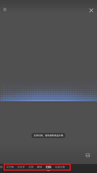 3、底部会显示识万物、识字、扫码等多种功能,按需要选择就能开始扫码了