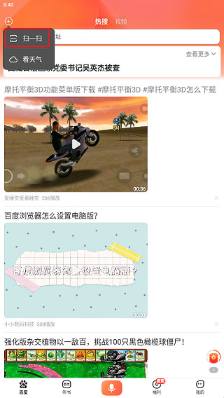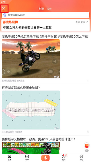 1、先打开百度畅听版APP,看到首页后点一下左上角的加号按钮