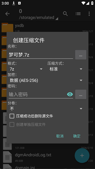 2、创建压缩包时可启用密码保护,采用AES高强度加密,防止他人随意查看内容