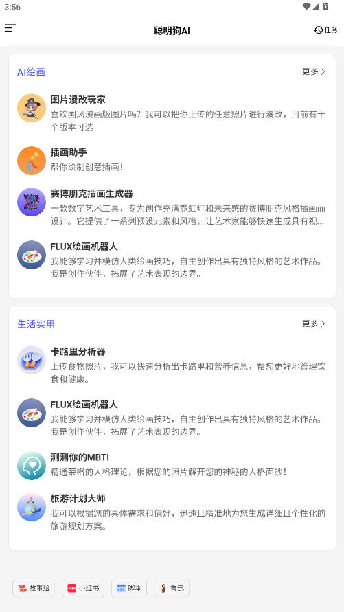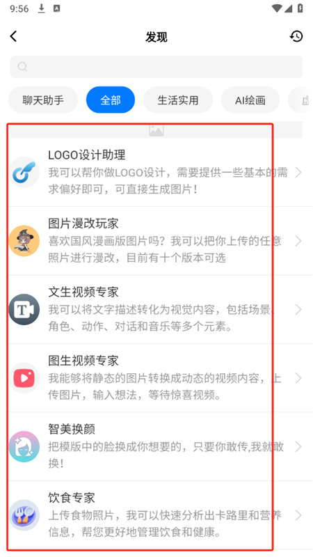 1. 内置海量智能体,覆盖写作辅助、图文视频生成、法律答疑、编程辅导等多个方向,几乎能满足日常各类需求。
