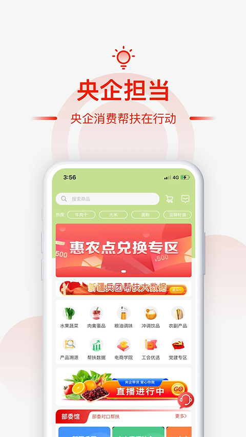 央企消费帮扶App就是国家电网电商搞出来的那个扶贫带货平台,现在很多城里人买生鲜、特产都爱来这儿逛,东西好不说,还能直接帮到贫困山区的农民兄弟,以前想买点正宗的土蜂蜜、脐橙啥的,总怕假货或者中间商赚差价,这App把央企的资源全拉进来,商品基本都从定点帮扶县直采,价格实惠质量稳,还带短视频看产地、看农民怎么种怎么收,买着心里踏实,也觉得自己在做点好事,平台不光卖货,还推电商学院教农民怎么拍视频、怎么上网卖,慢慢把他们培养成会做生意的职业农民,用了之后很多人说,买东西顺手了,扶贫也实打实了,以前捐款捐物总觉得隔一层,现在直接下单就等于帮人增收,感觉更接地气,总之,这App把央企的力气用在刀刃上,既满足城里人对好货的需求,也真真切切让贫困地区的老乡多条致富路子。
