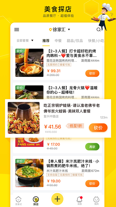 4、定位一开,周边店铺菜单和砍价活动全显示,满意就直接参与,超实用。