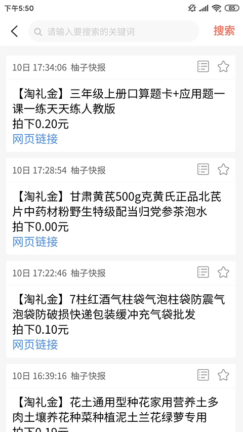 2、想省钱买东西点搜索框输商品名或品牌,大券列表跳出来挑高的领了复制链接去下单。