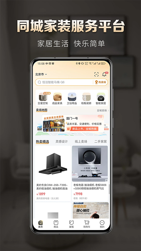 1、首次打开先授权定位,系统会自动把就近卖场排在首页,运费和安装费都能省一笔。
