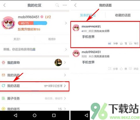 3、进入“我的话题”栏目,浏览你发布过的内容,选择想要处理的那一条话题。