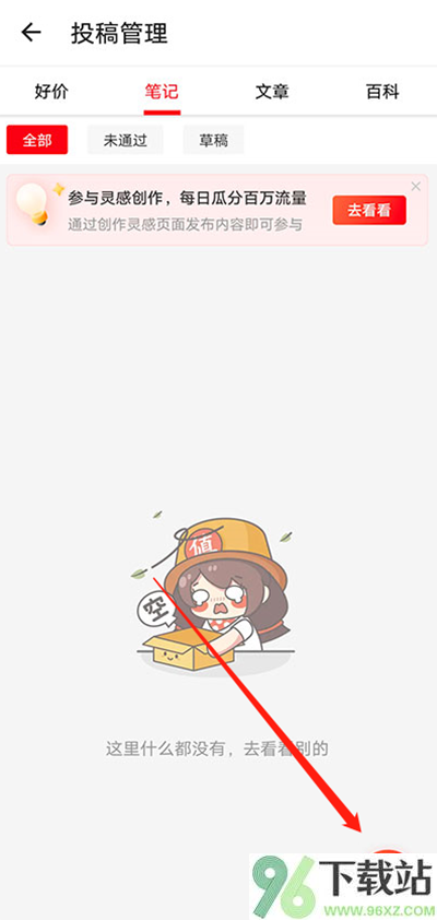 4、页面右下角有个明显的加号图标,点击它开始新建内容。