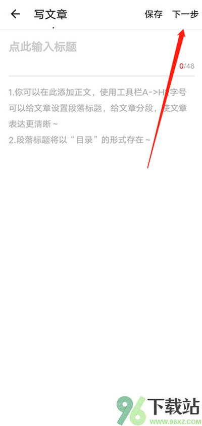 6、进入编辑页后,可以像用网页版一样自由排版、插入图片、加链接,写完点“下一步”继续。