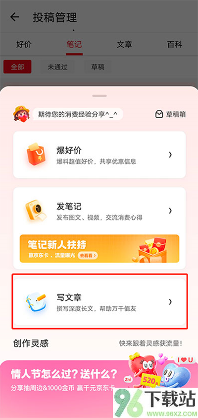 5、这时候可以选择发“报好价”、“写笔记”或者“写文章”,根据你想分享的内容类型来定。