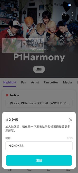 2、点击“注册”按钮,在弹出的“加入社区”窗口中填写你的昵称,确认后即可申请加入;