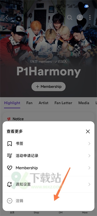 1、进入已加入的艺人社区,点击右上角“三个点”菜单,选择“注销”选项;
