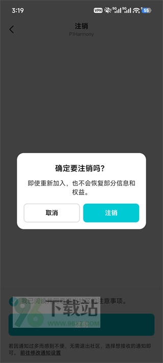 2、勾选“我已阅读并同意退出该社区”,然后点击“注销”按钮;