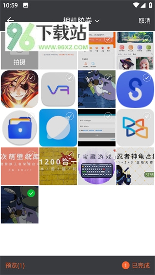4、登录完成后点击正下加号按键,进入需要分享的头像选择界面选择好后点击已完成;