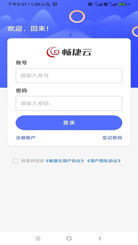 1、下载畅捷云APP官方版安装好,用办蒙通卡时的原手机号注册登录,验证码验证几秒进首页超简单。