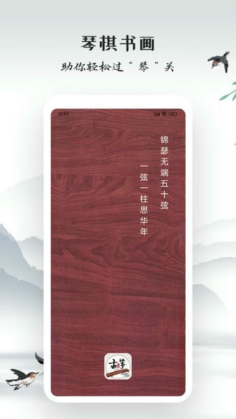 1、画面采用古香古色的UI设计,琴弦和琴码用3D建模,拨动动画流畅自然。