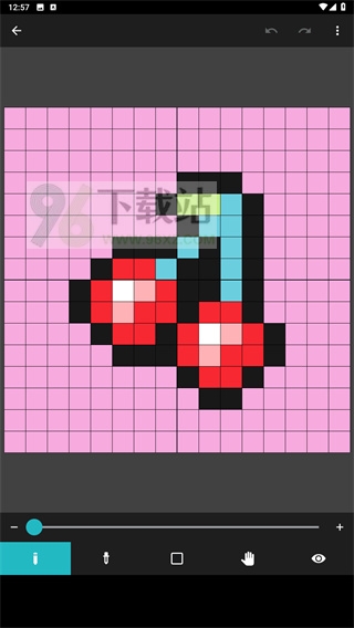 2、进入编辑界面后,用底部画笔工具点击格子上色,通过“+/-”按钮缩放画布,方便精细操作;