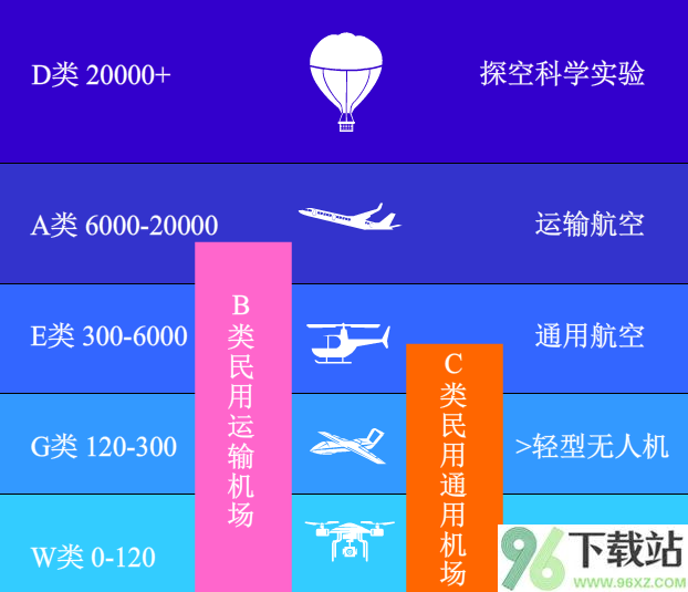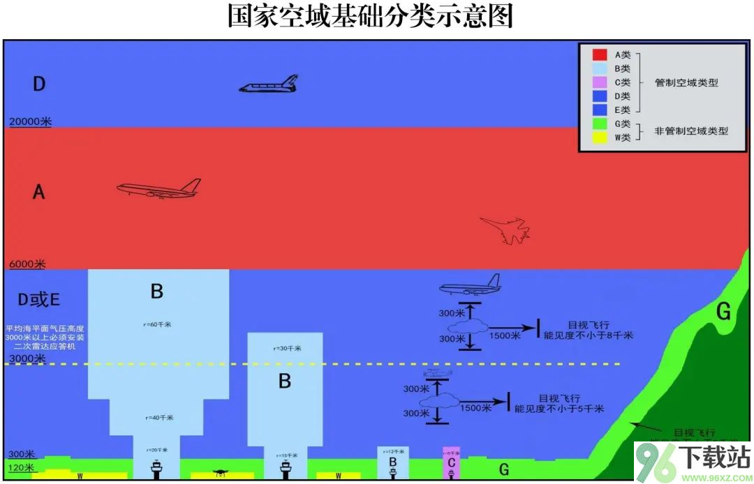 D类或E类则作为补充,用于其他未明确划分的空域,比如20000米以上的高空统一归为D类。