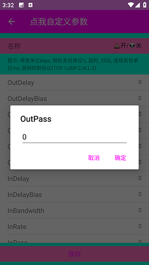 3、弹窗里可以修改延迟、上下行带宽、丢包率这些关键指标。