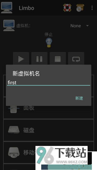 1、首次使用,先点击虚拟机配置旁的“None”,选择"New"创建新的配置,设定一个简易好记的名称。