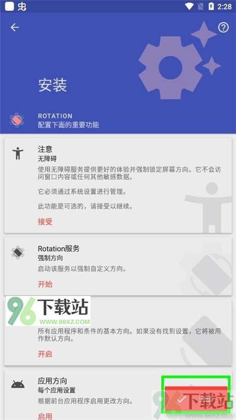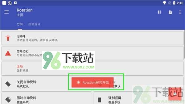 3、接下来,让我们以“强制横屏”这个功能为例,一探究竟。选中“强制横屏”选项后,系统会弹出权限申请,您只需轻点激活,即可让此功能生效,让屏幕乖乖听话。