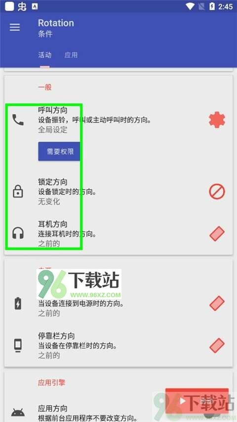 6、除了基础的横竖屏切换,Rotation应用还是一位贴心的管家,它提供了针对来电、锁屏、听歌等多种场景的屏幕方向自定义设置,让您在各种情况下都能拥有舒适的视觉体验。
