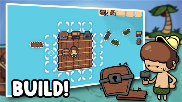 木筏求生2D版就是让你一个人漂在茫茫大海上,脚下就一块巴掌大的木筏,四周全是水,还有鳄鱼在底下虎视眈眈,你得靠自己打捞漂流物、砍浮木、钓鱼填肚子,一边饿着肚子一边提防被咬,还得琢磨怎么把这破筏子一点点搭成“海上小屋”,能种菜、能睡觉、能造武器,日子过得比鲁滨逊还糙,但越活越有盼头,没有花里胡哨的剧情,只有生存本身——饿了会掉血,累了能躺床,危险来了抄家伙干,简单直接,却让人一玩就停不下来。