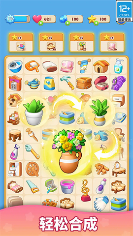 2、合成成功后会得到分数和新物品,这些新物品可以用来解锁房间里的固定区域或者升级旧家具。