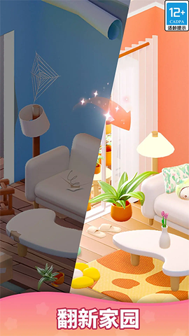 3、完成关卡目标后就能获得装修材料,回到家园界面选择要改造的房间,拖动家具进行摆放和替换。