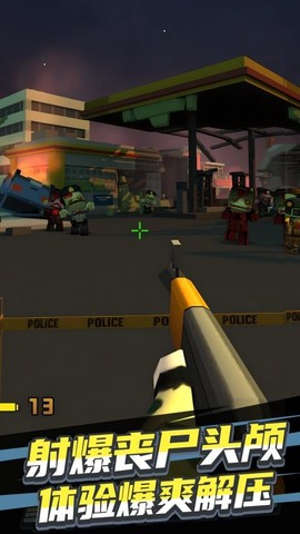 1、手指在屏幕上左右滑动控制瞄准方向,准星会跟着动,找到僵尸脑袋就别犹豫,赶紧点射击键把它放倒。