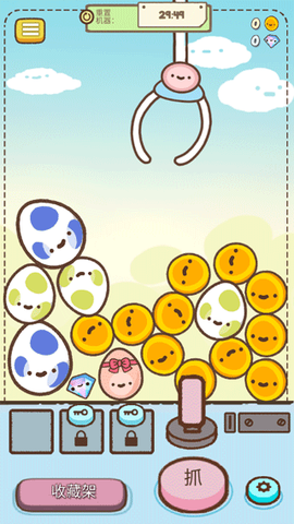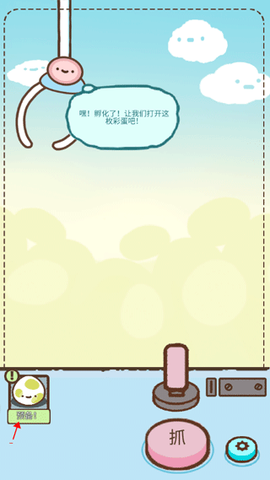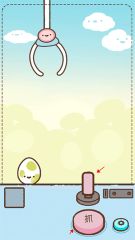 2、调整好位置后,点击“抓”按钮,爪子就会精准下降,自动锁定目标彩蛋。