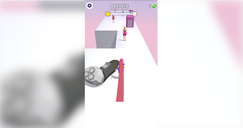 1、玩家要操控角色在不断向前的跑道上穿梭,通过左右滑动屏幕调整位置,避开剪刀、碎发机这类剪头发的陷阱,保证发量不断增长。