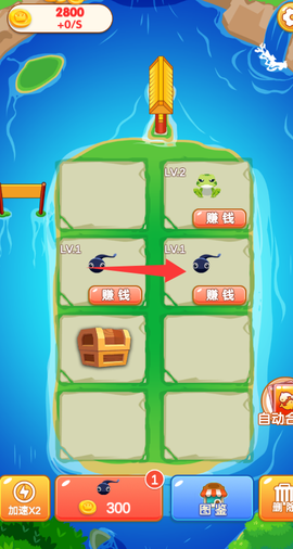 1、合成不是简单两两配对,而是三只一样的才能升级,比如三只青蛙合出蟾王,三只小火龙能变成喷火巨龙,总共能升十二级,每升一级模样和技能都变,越往后越稀奇。