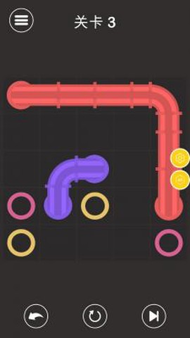 2、除了常见的直管和拐弯管,还会遇到三通、四通甚至可以旋转的活动接口,稍微摆错一步整盘皆输,得反复调整才能找到那条正确的通路。