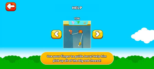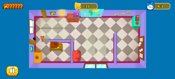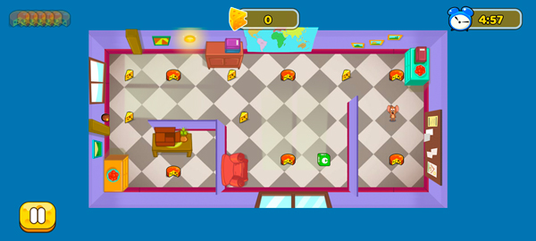 3、操作超简单:手指从杰瑞身上滑向某块奶酪,他就会自动规划路线过去捡。途中记得观察汤姆动向,必要时绕路或触发机关干扰他。