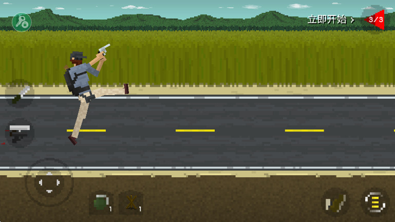 正式开始后,僵尸会陆续从屏幕边缘冒出来。这时候你可以布置陷阱,也可以拿起枪械或者斧头这类近战工具对付它们。特别注意:别老盯着脑袋打,真正有效的攻击位置是僵尸下半身,打中了它们才会倒地不起。