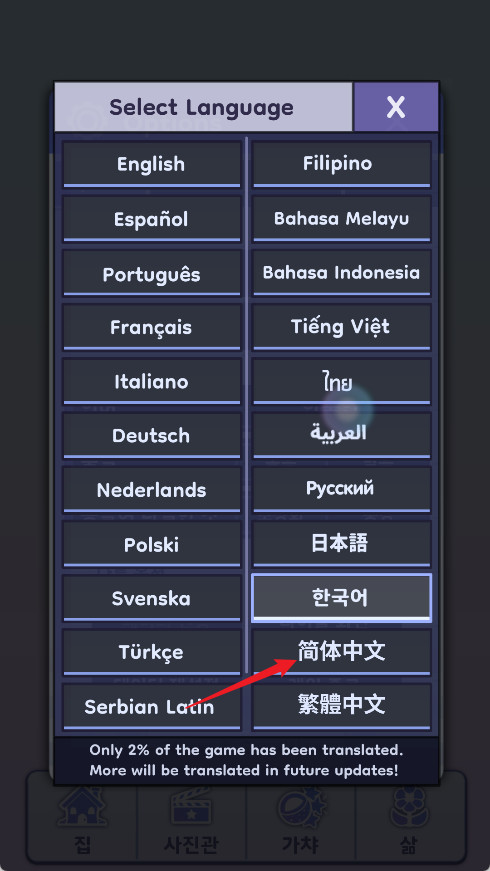 2、找到“Language”这一项,往下拉就能看到“简体中文”,点一下就行。