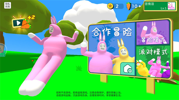 1、启动游戏后能看到三个主要入口:合作冒险、冒险模式和派对模式,新手建议从冒险模式开始练手。