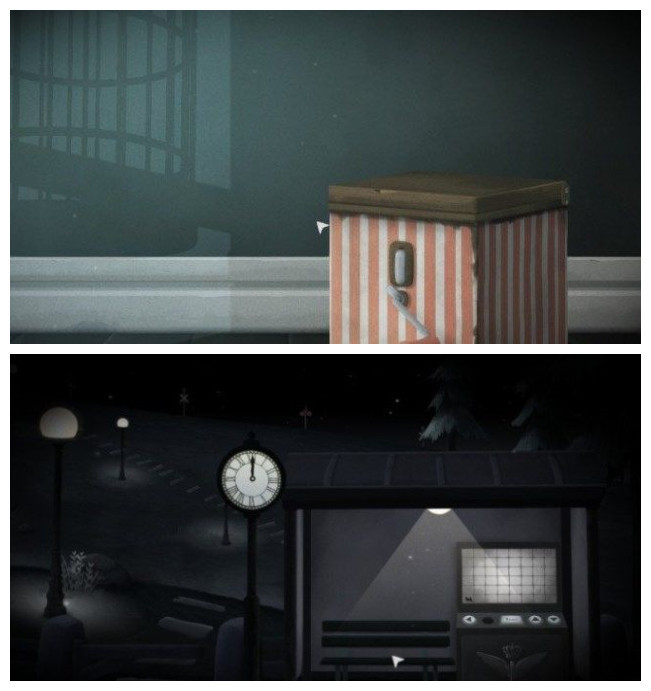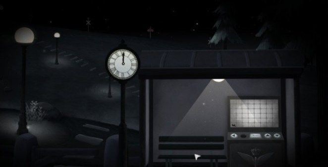 要进钟表店,得先把时间调到营业时段。方法是向右连续切换场景三次,等车站那边显示3点,店铺才会亮灯开门。店里有个调频装置,调对频率后会出现“eighteenth”(18日)这几个字母。另外,爬到顶楼还能翻到一份旧报纸,上面写着“Wednesday”(星期三),这两条信息后面会用上。