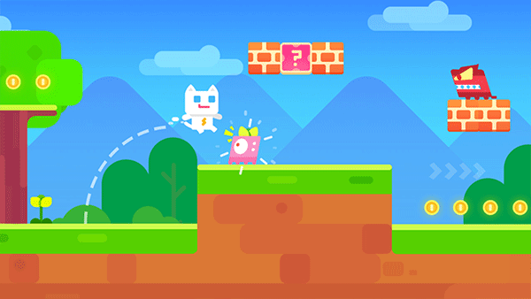 2、点一下跳跃键,不仅能跳上平台,还能顺手把头顶的金币收入囊中,有些箱子也能一脚踢碎;