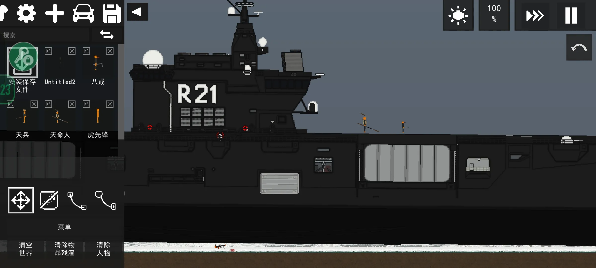 4、当你拖出一个可交互的道具(比如炮台或开关),旁边会出现控制按钮,点一下就能激活它的功能。