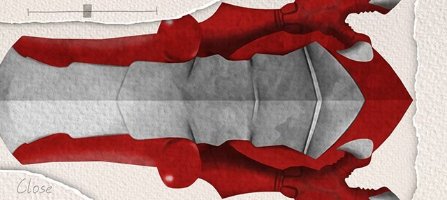 以剪刀为契约兽的骑士,Scissors卡盒配合V带扣变身,双臂装备巨型钳状武器。