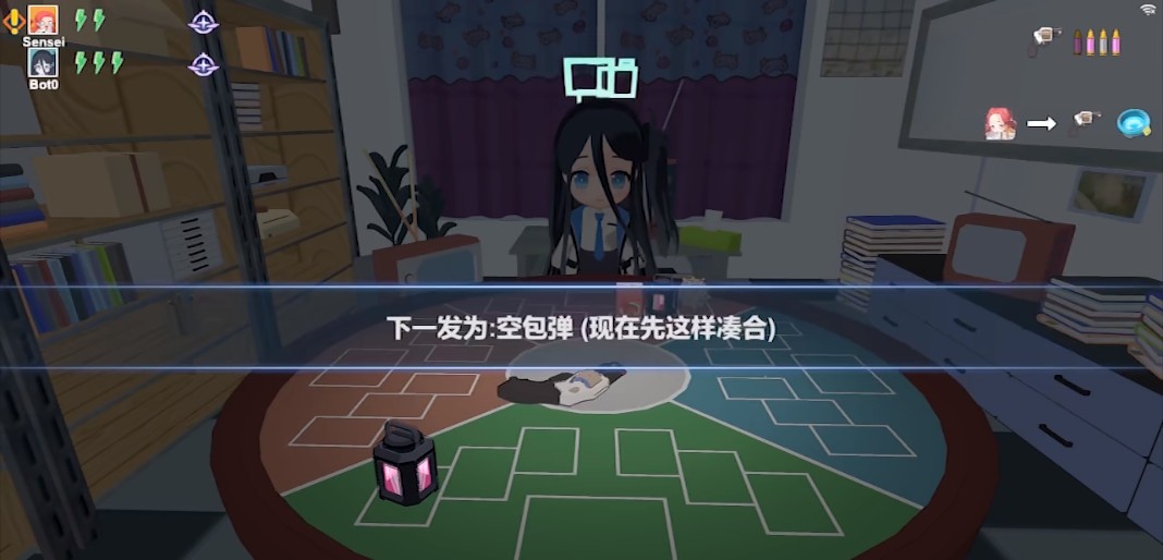 特别要注意的是,如果你朝自己开枪,打出的是空包弹,那还能继续行动;但万一撞上实弹,当场出局,接着就得乖乖接受系统安排的小惩罚。