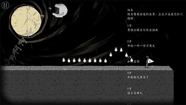 右边屏幕会蹦出这颗脑袋经历的各种破事,每长一岁就能解锁一段随机的人生小剧场。