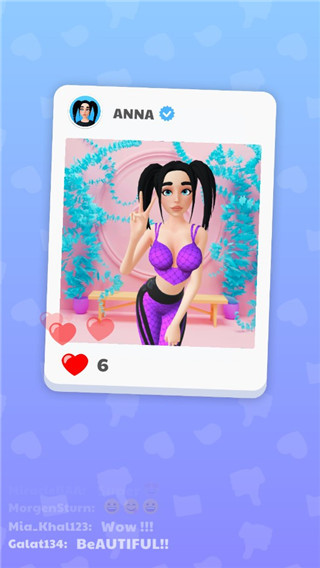 做好的作品可以发布到游戏里的虚拟社交平台,积累点赞和粉丝,人气高了能解锁更多稀有的面料、配件和设计模板,慢慢挑战更高难度的设计任务。