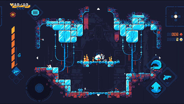 画面用色大胆又干净,角色动作在复古像素里显得格外利落。配上Joonas Turner操刀的电子乐,跑跳砍杀都踩在节拍上,整个地牢探险像一场高速节奏的视听演出。