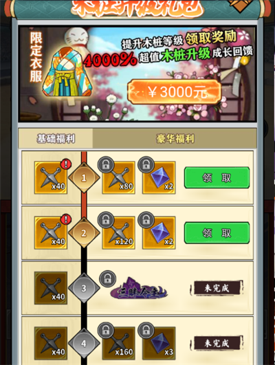 2、木桩升级礼包