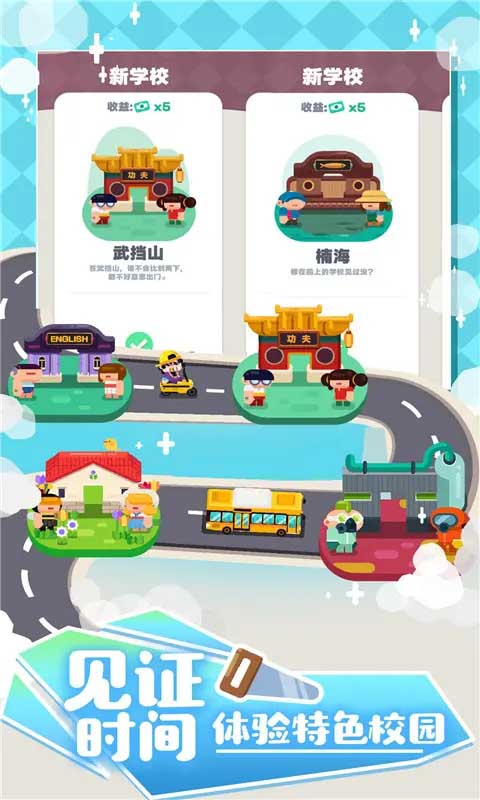 2、采用明亮活泼的卡通画风,将校园生活和经营管理的细节以轻松有趣的方式呈现,降低了模拟经营类游戏的严肃感。
