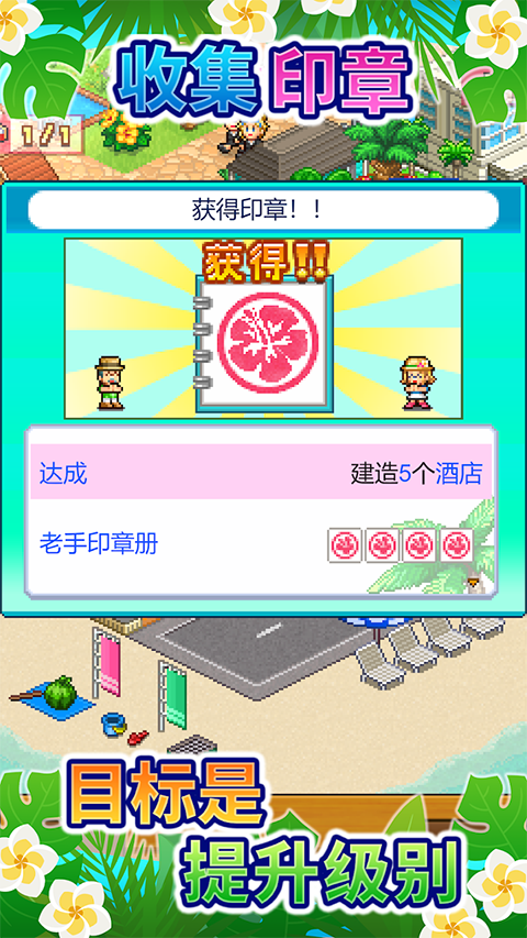 通过完成任务、参与评选和商业合作获得资源,不断解锁新建筑、新装饰与新功能,逐步扩大度假村的规模与名气。